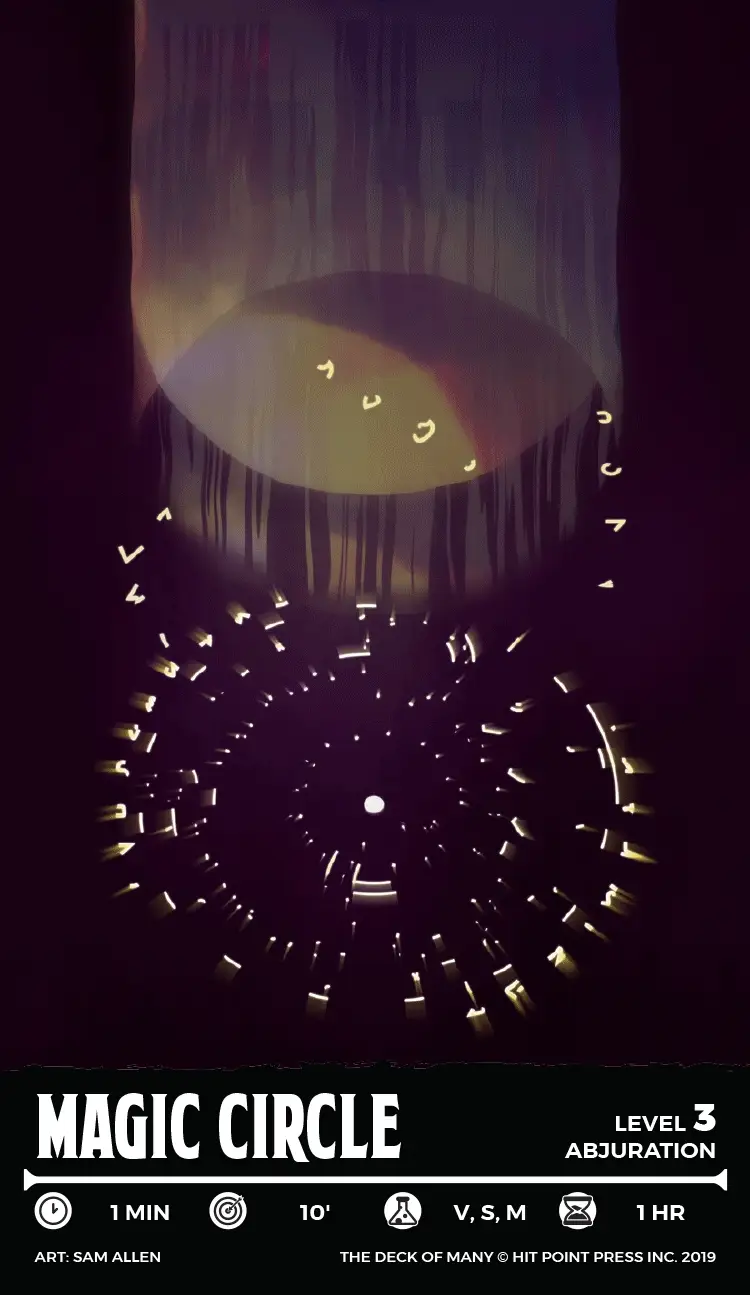 Animated Spells is a tool used to assist Game Masters and players alike in their 5e role-playing campaigns, freeing them from traditional reference books and allowing them to only bring the spells they need. Each card features an original 8 frame looping animation on the front and easy to reference information on the back.