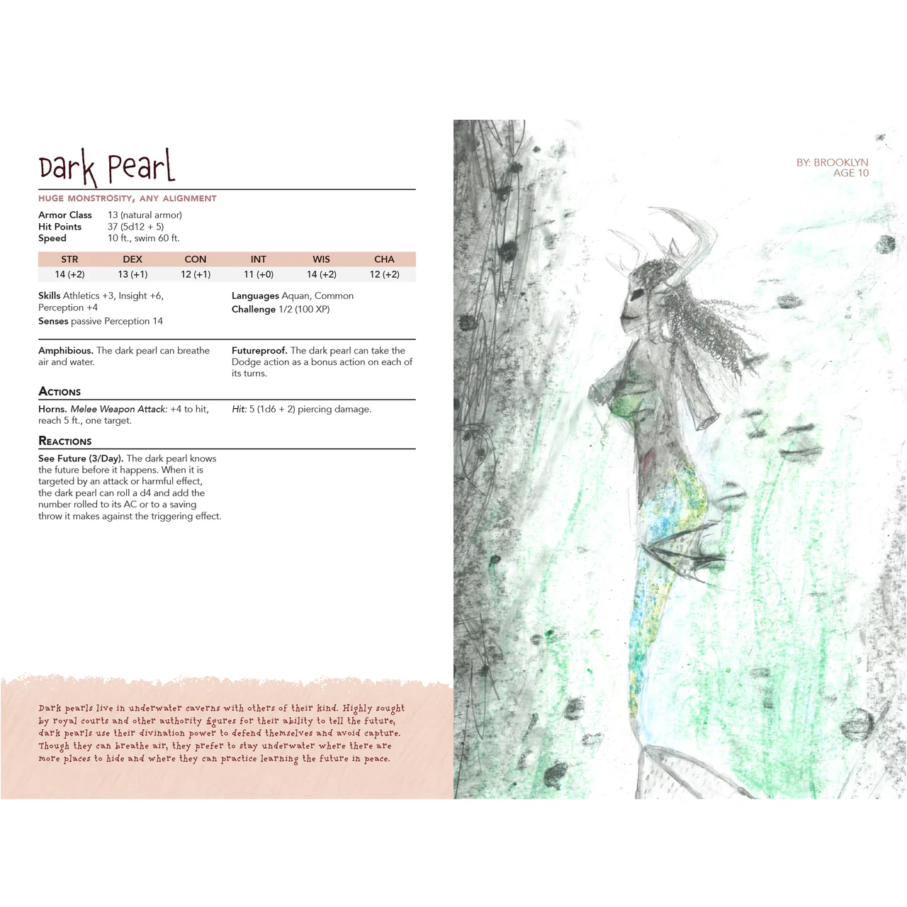 The Curious & Kind Bestiary is the result of an awesome day of workshops at Curious & Kind, a wonderful community space in Almonte, Ontario. The Hit Point Press team hung out with creative kids, developing their very own creatures for D&D 5th Edition.