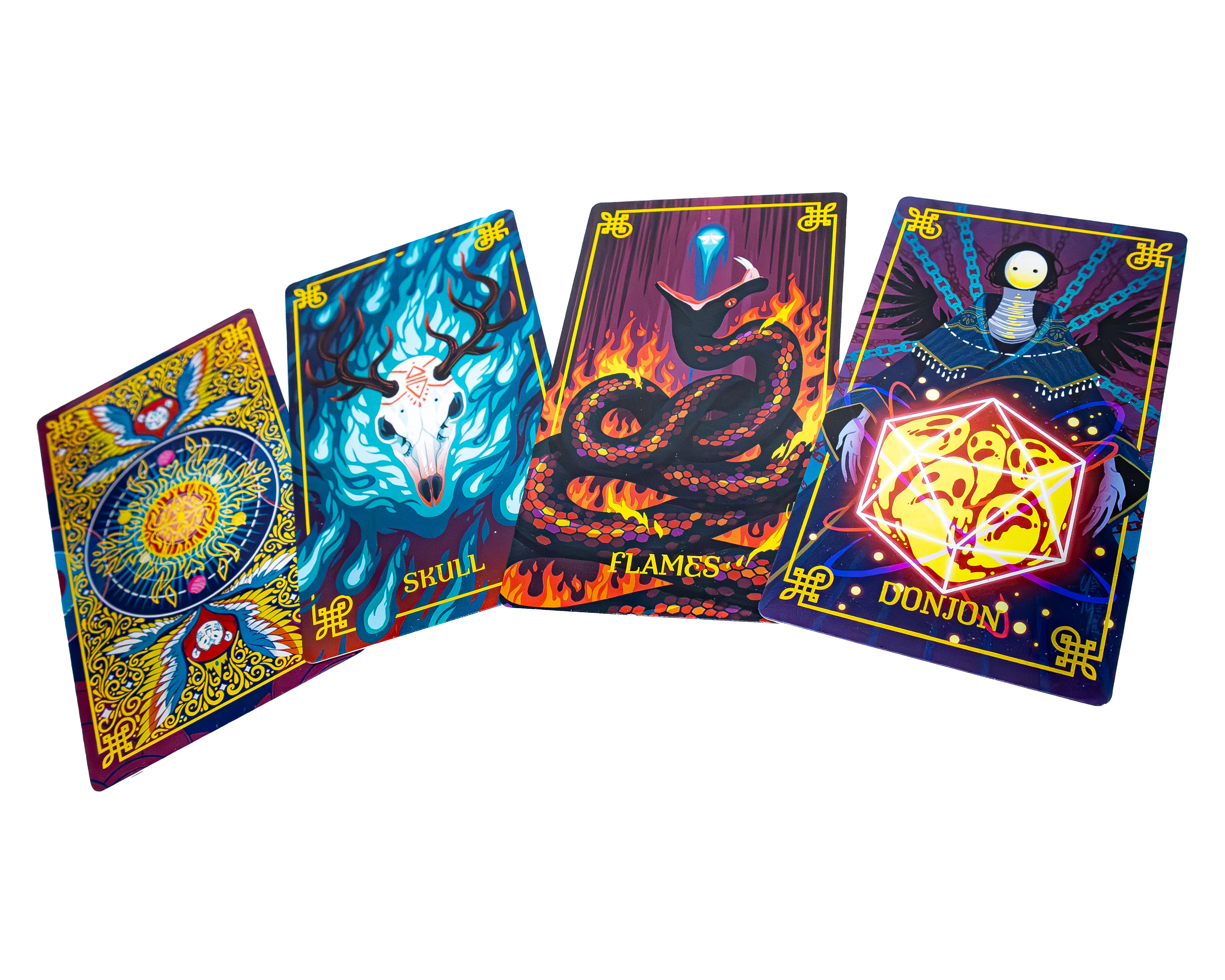 The Fablemaker’s Deck of Many Things Holo-Foil Box Set brings new power to this classic magic item. Rather than 22 cards, you’ll find 46. In the special holo-foil version of the deck, the vivid Overworld cards shine with rainbow brilliance, and the Underworld cards reflect the colors from the light around you.