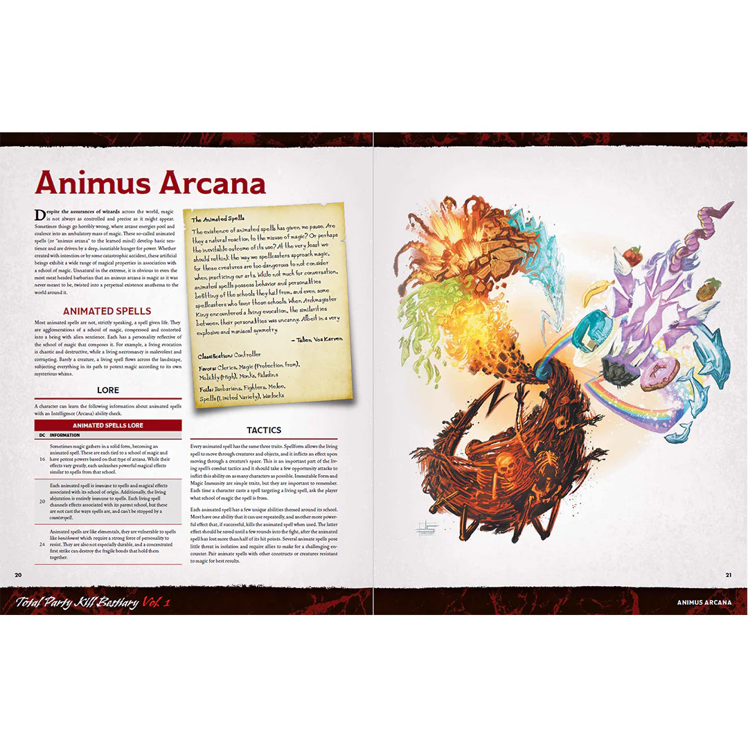 Put simply, the Total Party Kill Bestiary is quite possibly the greatest compilation of high-level monstrous foes compatible with the 5th Edition of the world's greatest role-playing game. The 280 page book focuses on development of monsters with Challenge above 10, totaling 100 creatures with special emphasis on non-humanoid, non-legendary creatures.